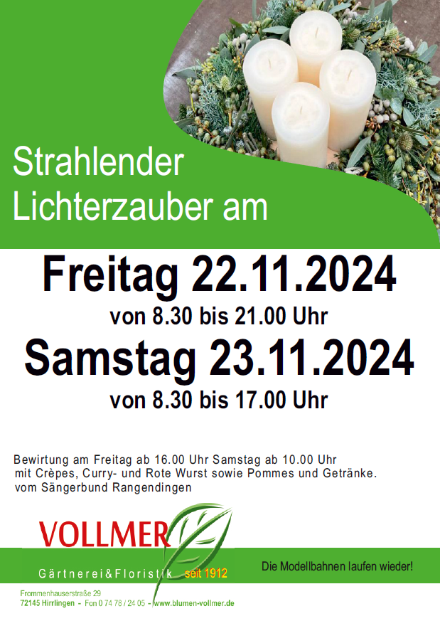 Vollmer Gärtnerei & Floristik | Frommenhauser Str. 29 | 72145 Hirrlingen | Telefon 07478 2405 | E-Mail: info@blumen-vollmer.de